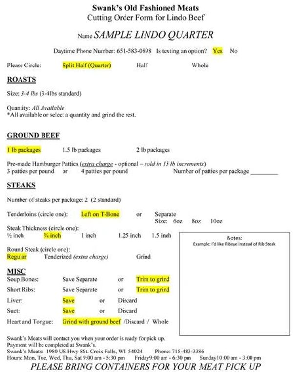5. Swank's Meats will contact you when your beef is ready for pick up.